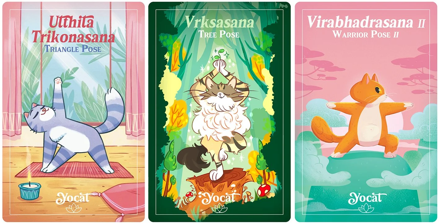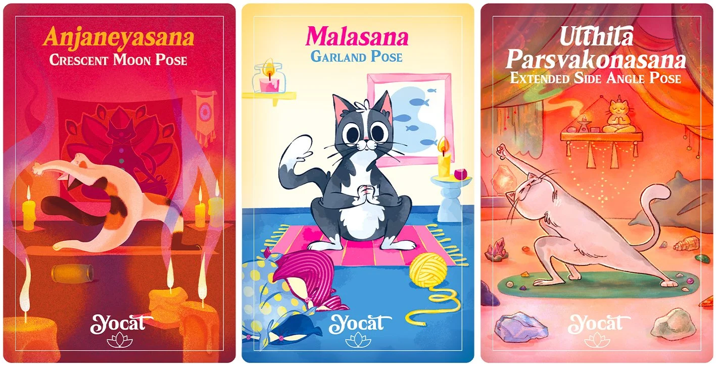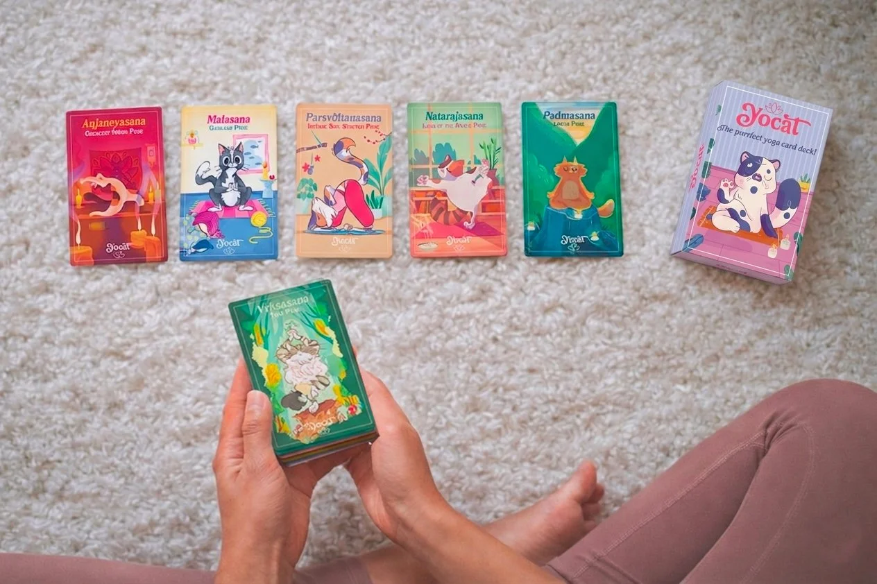 Così è nato YOCAT, un mazzo di carte illustrate che unisce lo yoga e i gatti.
