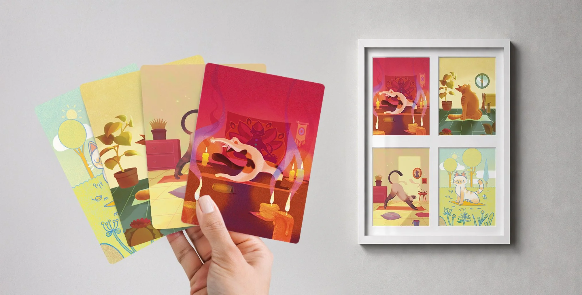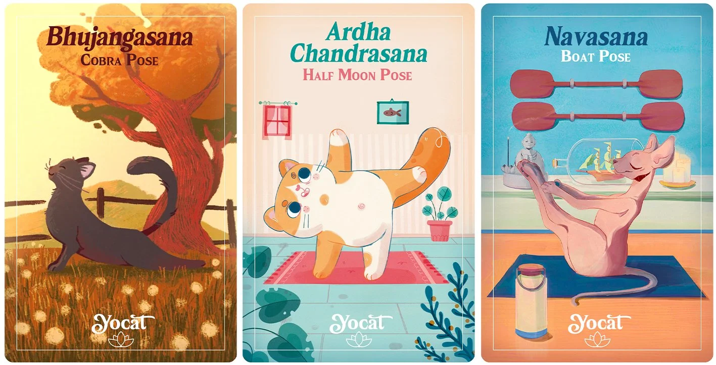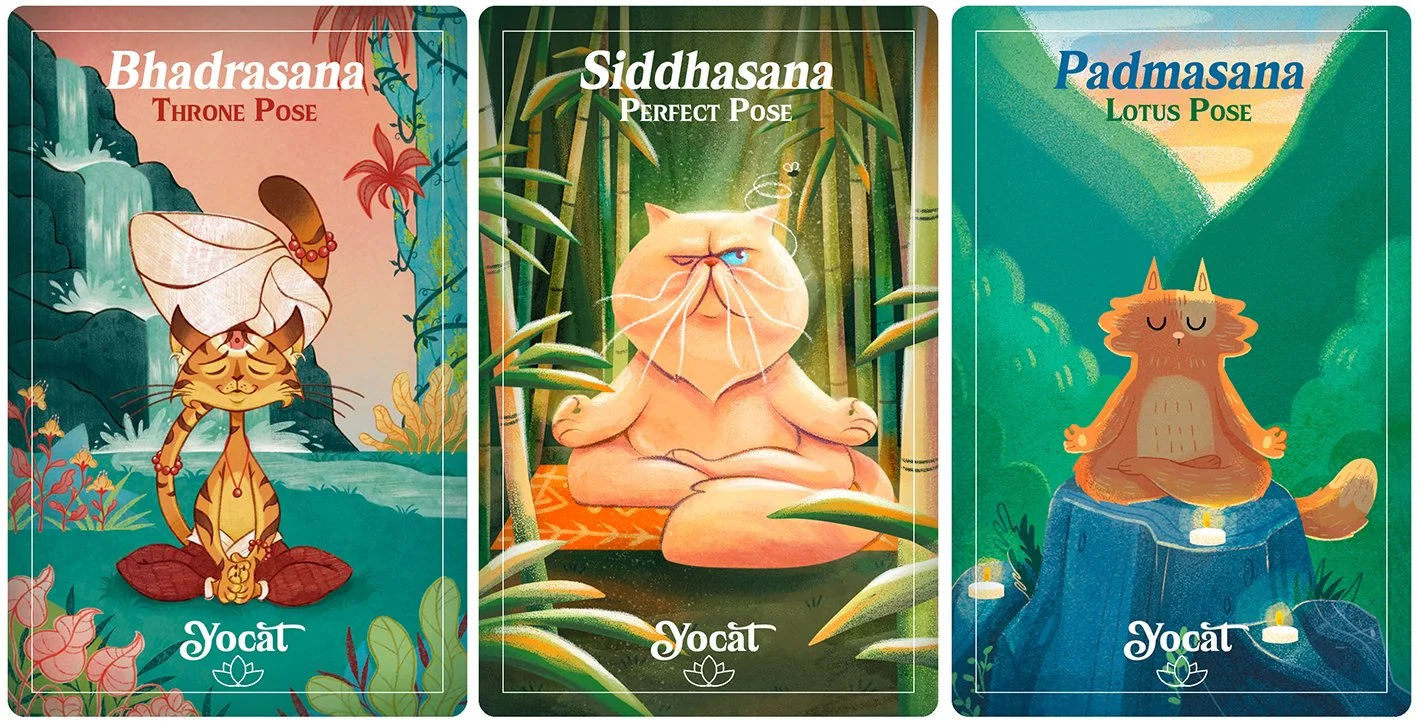 Così è nato YOCAT, un mazzo di carte illustrate che unisce lo yoga e i gatti.