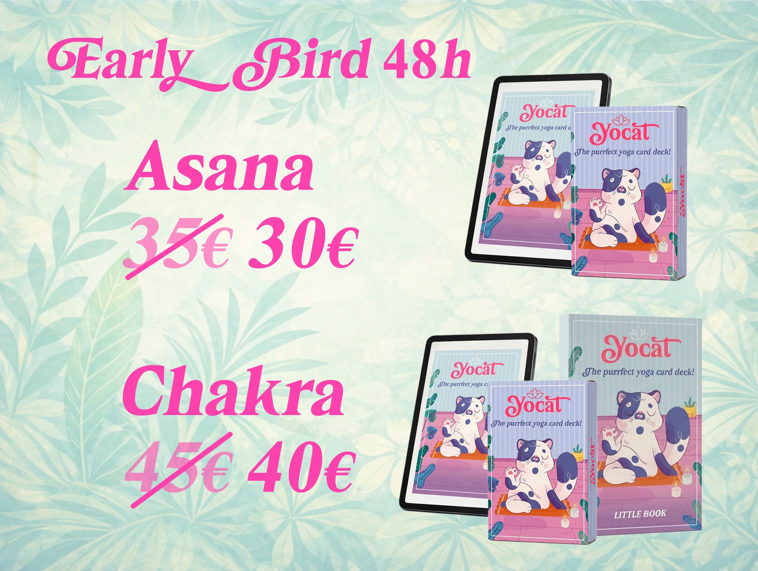 1 copia digitale del deck di Yocat in formato PDF.Con 35€, premio “ASANA” (adatto a chi ama le illustrazioni e i gatti), riceverai: